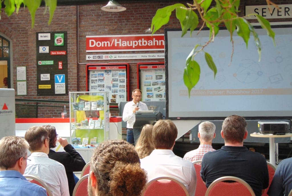 Gastgeber der Veranstaltung in Köln, der vorletzten Station der Show, war AV-Solution Partner AbisZ Medien. Als “Location” hatte man das geschichtsträchtige Straßenbahnmuseum Köln gewählt – und damit einen reizvollen Kontrast zu den zukunftsorientierten Inhalten der Veranstaltung geschaffen. Hier hatten sich die AV-Solution Partner für Blick über den Tellerrand entschieden und präsentierten statt AV-technischen Inhalten Vorträge, die sich mit künftigen Einsatzbedingungen der Medientechnik wie mobiles Arbeiten und IT-Sicherheit befassten.