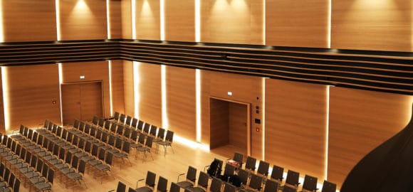 Durch ein ungleiches Lamellenmuster im Raum wird Schall diffundiert. (Bild: Nicolay Ketterer)