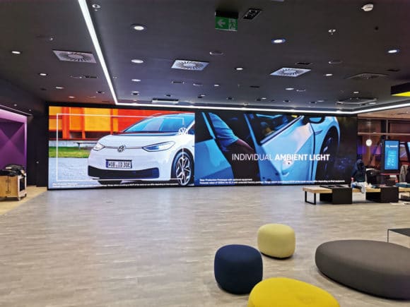 Die 39 m2 große LED-Wall aus 26 x 6 DB2.6LE Modulen von Infiled wurde von von AVE Audio Visual Equipment Verhengsten im Dezember 2019 in der VW-Autostadt installiert. (Bild: AVE Audio Visual Equipment Verhengsten)