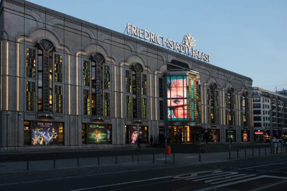 Der zweistöckige Erkerbereich des Berliner Friedrichstadt-Palasts wurde von ICT mit einer passgenauen vierteiligen LED-Fläche aus ER4.6PRO-Modulen ausgestattet. (Bild: ICT)