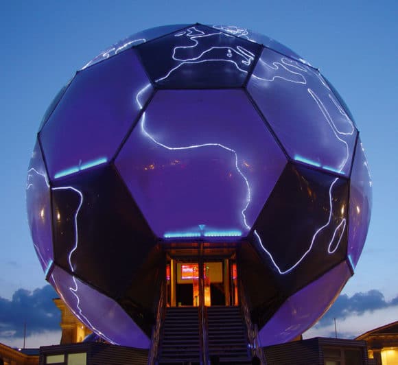 Im Vorfeld zur „Sommermärchen“ Fußball-Weltmeisterschaft 2006 in Deutschland tourte ein überdimensionaler und begehbarer Fußball drei Jahre lang durch die zwölf austragenden Städte und kehrte pünktlich zur Eröffnung des Turniers nach Berlin zurück. Dort fungierte er während der WM als beliebter Treffpunkt für die Fans aus aller Welt. Das Innere des Globus’ diente als Ausstellungsbereich von Fußball-Devotionalien aller Art und als Location für kulturelle Veranstaltungen rund um den Fußball.