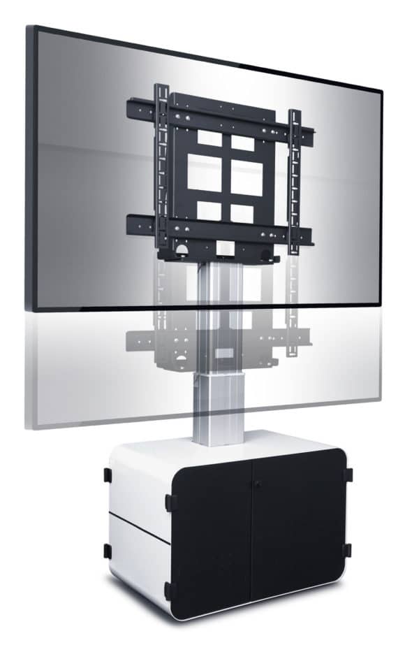 Besonders beliebt in Unternehmen mit mehreren Meetingräumen sind das Side-Board „E-Space-Hub“ und der Displayständer „E-Space-Titan“ – beide sind rollbar und motorisch höhenverstellbar. So können große Displays oder LED-Walls bis 130 kg je nach Präsentations-Anwendung positioniert oder leicht von Raum zu Raum bewegt werden – beim großen Bruder „Gigant“ ist dies sogar mit Monitor- oder LED-Wänden bis zu 210 kg Gewicht möglich.