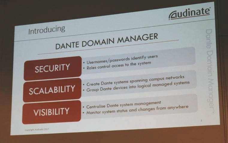 Audinate stellte den Dante Domain Manager auf der Prolight + Sound 2017 vor (Bild: Christiane Bangert)