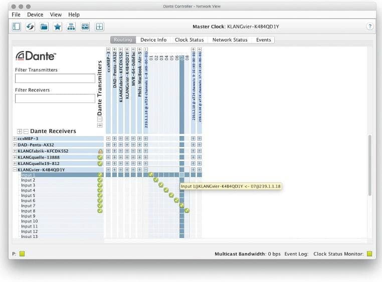 Mit dem SAP-Converter von ALC Networx können die Ravenna-Kanäle im Dante Manager erkannt werden (Bild: Christiane Bangert)