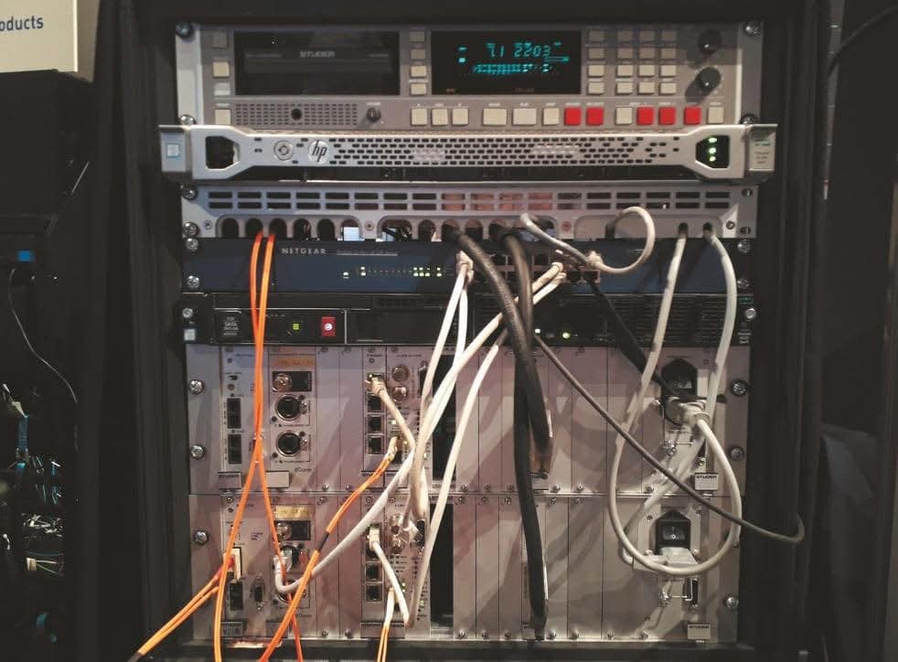 Auf der POSTNAB 2017 demonstriert Studer anhand eines Demo-Racks, wie sich mit DIOS das Signal seinen Weg über Netzwerk-Technologien hinweg sucht (Bild: Christiane Bangert)