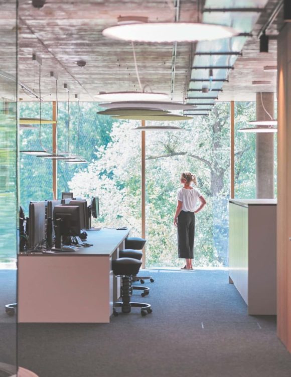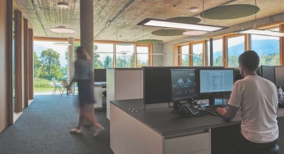 Das Verwaltungsgebäude der Bora Vertriebs GmbH & Co KG im österreichischen Niederndorf ist ein Paradebeispiel für eine moderne Bürobeleuchtung. (Bild: Josefine Unterhauser / Licht im Werkhaus)