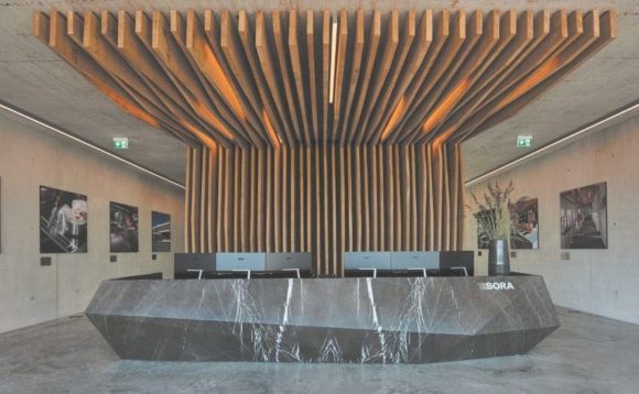 Empfangsbereich der Bora Vertriebs GmbH & Co KG in Niederndorf (Bild: Josefine Unterhauser / Licht im Werkhaus)