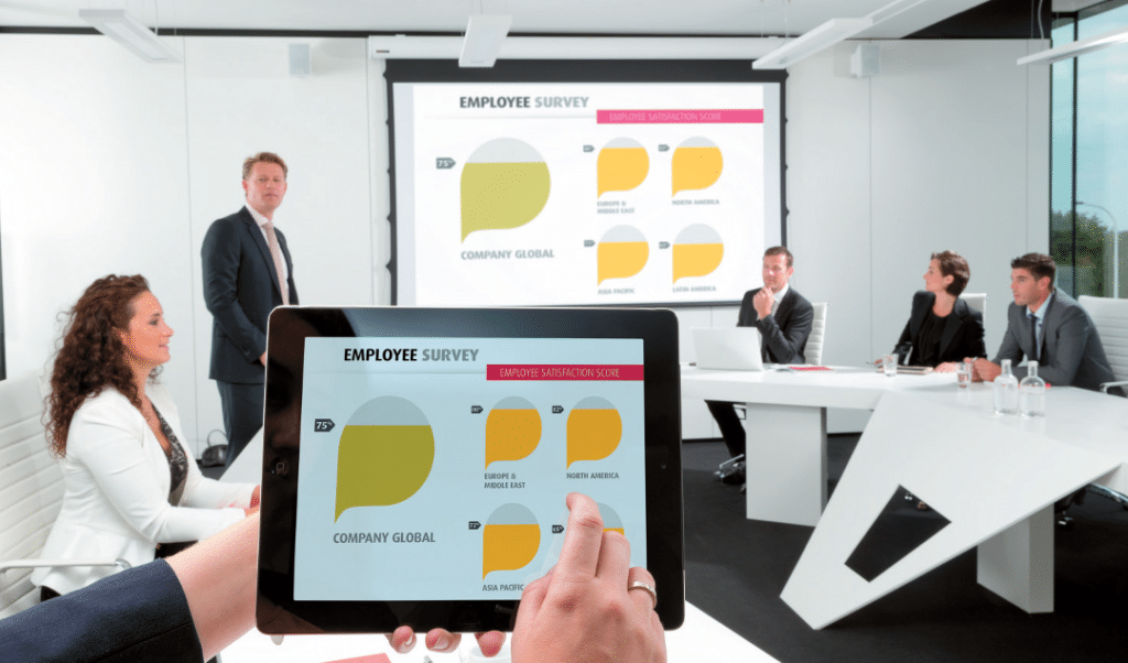 Tablets als Datenquelle bei Konferenzen und Präsentationen – wireless angebunden durch BYOD-Präsenter (hier: ClickShare)