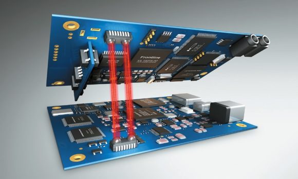 Drahtlose Board-to-Board-Kommunikation mit bis zu 12,5 Gbit/s (Bild: Fraunhofer IPMS)