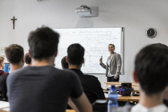 Je nach Anforderung bieten sich in Klassenzimmern auch Projektionslösungen an, z. B. mit Epson Ultrakurzdistanzprojektoren. (Bild: Epson)