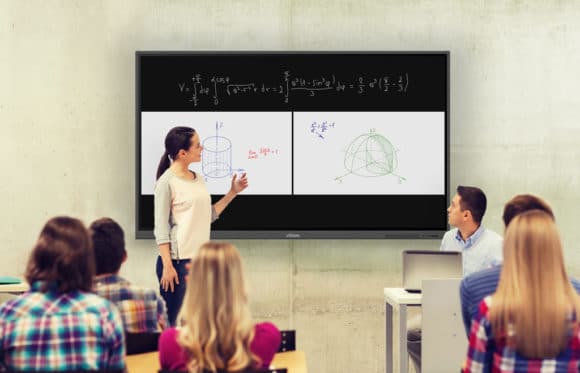 Für die Digitalisierung des Unterrichts müssen alle Inhalte didaktisch und digital aufbereitet und in einwandfreier Qualität dargestellt werden, wie das Lehrbeispiel auf einem interaktiven Display der Firma Vivitek zeigt. (Bild: Vivitek)