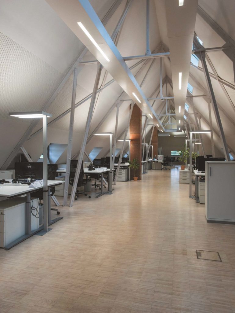 Moderne Büroarchitektur erfordert auch eine passende Steuerungselektronik hinsichtlich der Beleuchtungsanlage. Hier können Funklösungen eingesetzt werden, um den Installationsaufwand möglichst gering zu halten. (Bild: Schwarz-Licht)