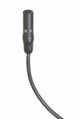 Das Kleinst-Kondensator-Mikrofon AT898 von Audio-Technica ist besonders für maximale Verständlichkeit und naturgetreue Sprachwiedergabe konzipiert. Gleichzeitig ist es unempfindlich gegen niederfrequente Störgeräusche und kann sowohl über Batterie wie auch Phantomspeisung mit der nötigen Betriebsspannung versorgt werden. Ein drei Meter langes Anschlusskabel ist fest mit dem Ansteckmikrofon verbunden. Das AT898 kostet 215 €.