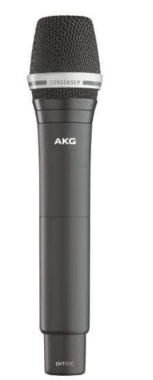Zum digitalen Mikrofonsystem DMS800 gehört der Handsender DHT800 von AKG Acoustic. Wechselbare Mikrofonköpfe erlauben auch hier je nach Anforderung die Verwendung der passenden Kapsel. Die Kondensatorkapsel C5 beispielsweise verspricht laut Hersteller einen warmen Klang und hohe Sprachverständlichkeit. Jedoch lassen sich auch Mikrofonköpfe anderer Hersteller verwenden, wofür AKG einen passenden Adapter anbietet. Die Sendeleistung lässt sich zwischen 10 und 50 mW einstellen. Im Handsender sind Ladekontakte integriert, über die er sich innerhalb von zwei Stunden aufladen lässt. Alle wichtigen Einstellungen werden im Display des Handsenders angezeigt, das Auskunft über Frequenz, Kanal, Ausgangsleistung und den aktuellen Batterie-Status gibt. Der Preis des DHT 800 beträgt 439 €.