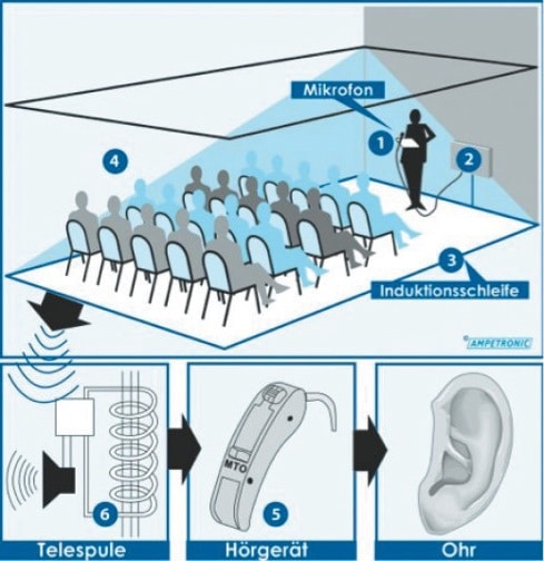 Funktionsprinzip der induktiven Höranlagen (Bild: Ampetronic/Laauser & Vohl)