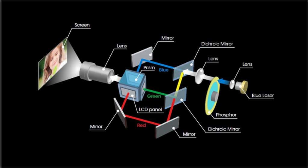Funktionsprinzip eines Laser-Phosphor-Projektors von Sony basierend auf 3 LCD