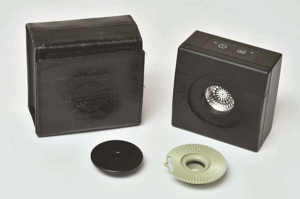 FOTO 01: Siemens DIN Lautstärkemesser von 1952 mit Messmikrofon für den „Handbetrieb“ als frühe Version eines Handpegelmessers (Bild: Dr. Anselm Goertz)