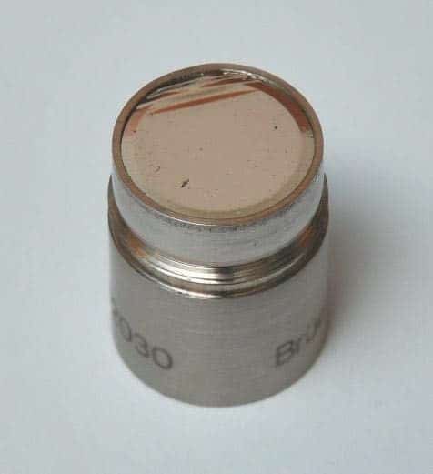 FOTO 10: Eine defekte 1/2″ Kapsel. Oben links ist deutlich die geknitterte Membran zu erkennen. Die Ursache war ein Sturz des Stativs mit dem Mikrofon. (Bild: Dr. Anselm Goertz)