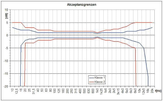 ABB. 07: Toleranzbänder für Pegelmesser der Klasse 1 und Klasse 2 (Bild: Dr. Anselm Goertz)
