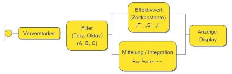 Vereinfachtes Blockschaltbild eines Schallpegelmessers