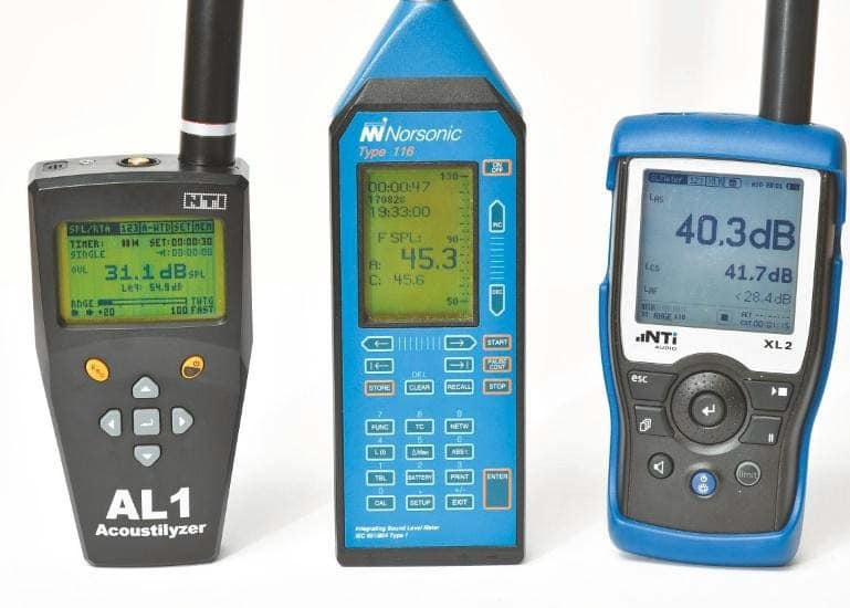 FOTO 03: Weit verbreitete aktuelle Modelle von Handpegelmessern: Der schon etwas in die Jahre gekommene NTI AL1, ein Norsonic 116 und der populäre NTI XL2 (v.l.n.r.) (Bild: Dr. Anselm Goertz)