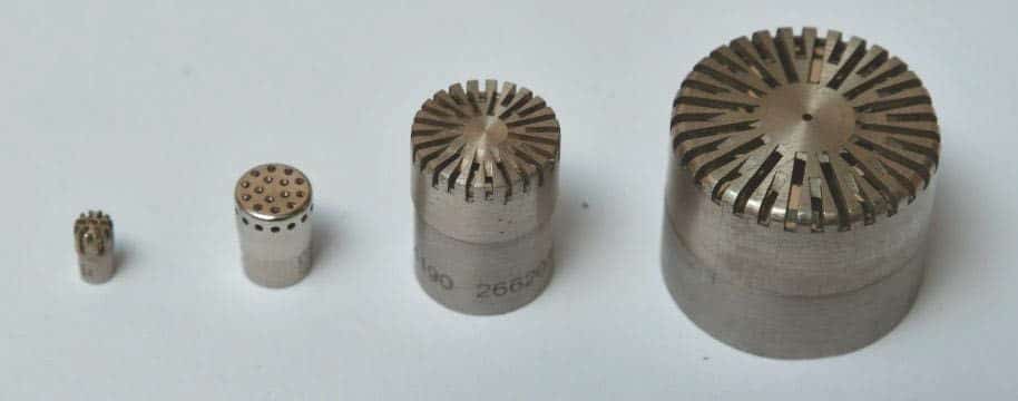 Mikrofonkapseln in vier Standardgrößen mit 1/8", 1/4", 1/2" und 1" Durchmesser