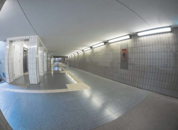 Doch auch in öffentlichen Unterführungen, beispielsweise an Bahn- und U-Bahnstationen, stellt das richtige Licht in erster Linie einen hohen Sicherheitsfaktor dar. Dabei geht es nicht nur um gefühlte Sicherheit durch eine angemessene Beleuchtung, sondern auch um eine entsprechende Wegführung. Da wundert es nicht, dass diese unterirdischen Personenwege inzwischen von den Gemeinden gerne eine umfassende Restauration erfahren, um hier für ein angemessenes Ambiente zu sorgen. Dabei spielt die Beleuchtungslösung eine entscheidende Rolle, denn sie sorgt nicht nur für die Sicherheit der Passanten, sondern durch ein passendes Beleuchtungsniveau auch für ein erhöhtes Wohlbefinden. Nicht nur die erhöhte Schutzart (IP 65) und der Einsatz von hochschlagfesten Materialien (z. B. Schutzgrad IK 16/150 Joule) machen diese Produkte zu einer langlebigen Lösung. Insbesondere die LED-Technik garantiert eine erhöhte Einsatzzeit und entsprechend geringere Wartungskosten. So sind die Gehäuse oft aus verzinktem Stahlblech gefertigt, mit speziellen Grundanstrichen vorbehandelt und mit chemisch, UV-stabilisierter, witterungs-, abriebbeständiger und kratzfester Strukturbeschichtung veredelt. Zum Schutz vor unbefugtem Eingriff sollte der Rahmen mit manipulationssicheren Spezial-Schrauben über eine Gummidichtung am Gehäuse gesichert sein, was zur Öffnung entsprechendes Spezialwerkzeug erforderlich macht.