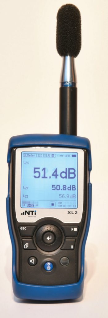 Handpegelmesser XL2 mit M2210 Messmikrofon. Das relativ preisgünstige Gerät des Liechtensteiner Herstellers NTI zählt zu den am meisten verbreiteten professionellen Handpegelmessern. (Bild: Anselm Goertz)