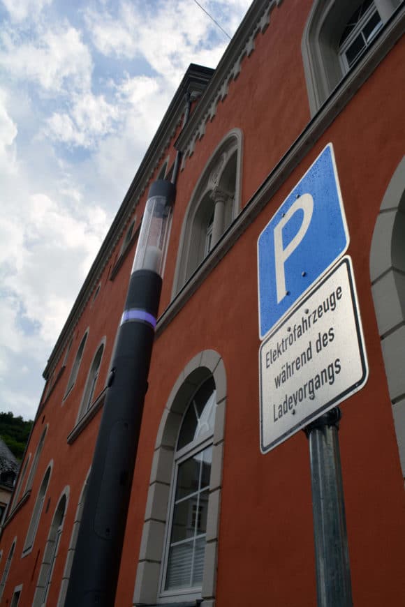 An fünf zentralen Standorten in der Innenstadt von Traben-Trarbach hat der Energieversorger innogy neue Multifunktionsleuchten, sogenannte Smart Poles, errichtet. (Bild: innogy SE)