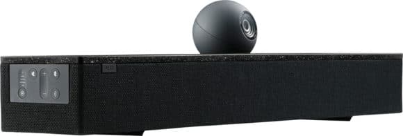 Auch Crestrons Videobar ist einfach über eine integrierte Wandhalterung zu befestigen und via Plug & Play leicht zu installieren, zudem unterstützt sie alle gängigen Konferenzprogramme. Hinzu kommt eine farbige LED-Leiste, die auf einen Blick den Status des Geräts (gemutet, verbunden, Lautstärke etc.) klar machen soll.