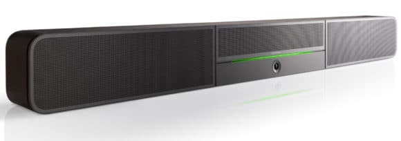 Videobars erinnern im Design an die Soundbars für den Heimkinomarkt. Die Lautsprecherleiste wird allerdings optisch durch eine mittig installierte Kamera ergänzt. Hinzu kommt eine intern verbaute Mikrofonierung. Damit ist die Videobar Freisprecheinrichtung, Bluetooth- Lautsprecher und Webcam in einem.