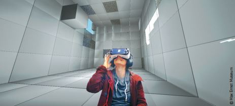 Kreativer Einsatz von VR in der Ausstellung „M.C. Escher“ im Max Ernst Museum Brühl: In Anlehnung an M.C. Eschers Architekturstudien macht der Virtual-Reality-Spielplatz „The Impossible Room“ die fantastischen Möglichkeiten virtueller Raumteilung erlebbar (Bild: Max Ernst Museum)