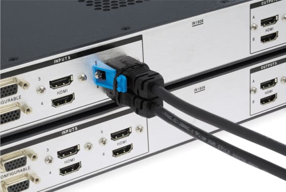 Das Verriegelungssystem ist im HDMI-Stecker untergebracht und verriegelt in allen herkömmlichen HDMI-Buchsen. Mit nur einem Handgriff wird die Verriegelung betätigt. Das System wird auch für die HDMI 2.1-Kabel zur Verfügung stehen.