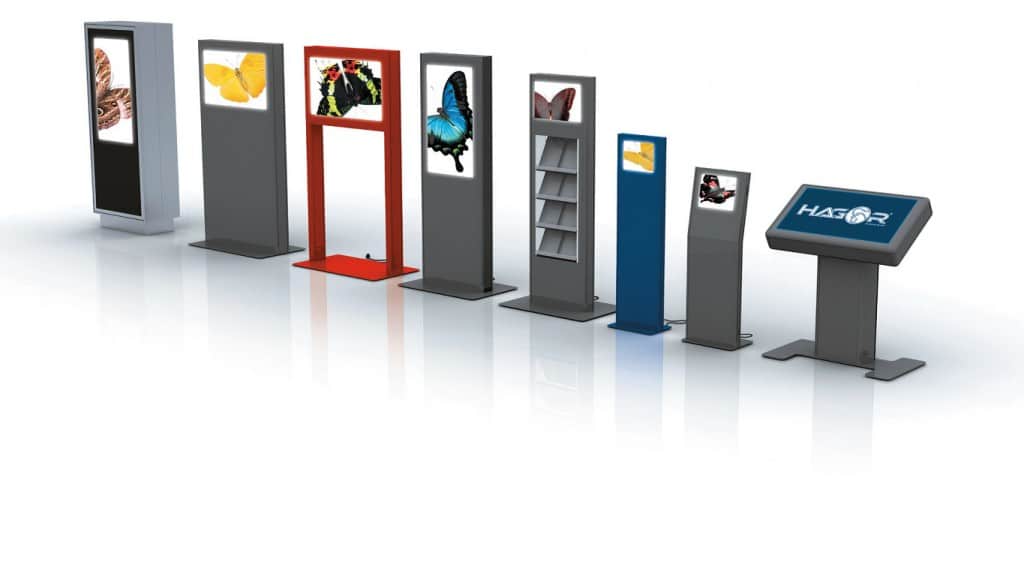 Zur Hardware zählen nicht nur Displays, sondern auch deren Gehäuse wie Stelen, die in großer Vielfalt angeboten werden (Beispiel: Hagor Products) (Bild: Hagor Products)