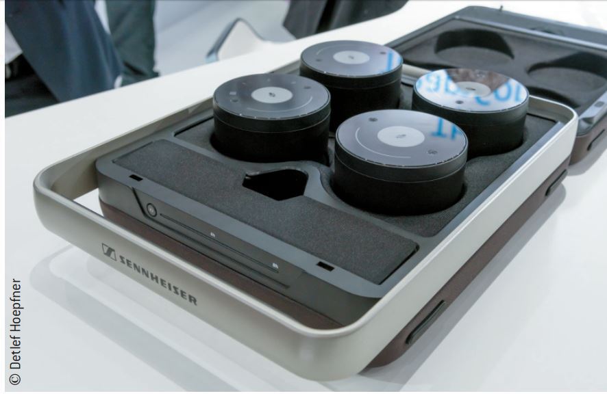 Via Standard Ethernet-Kabel lassen sich die Signale der Mikrofonarrays in ein bestehendes Dante Audio-Netzwerk einbinden. Einfache Bedienung und hohe Flexibilität verspricht Teamconnect Wireless von Sennheiser, einer drahtlosen Lösung für mobile Audiokonferenzen mit bis zu 24 Teilnehmern an jedem Ort. Die in ein stylisches Design verpackte, tragbare Lösung besteht aus einem Master und drei Satelliten, die sich drahtlos via DECT miteinander verbinden lassen und somit auch „Huddle Spaces“ in eine vollwertige Konferenzumgebung verwandeln. Darüber hinaus kann der Nutzer mit jedem Bluetooth-Gerät professionelle Konferenzanrufe binnen weniger Sekunden einrichten. Zudem unterstützt das System kabelgebundene Verbindungen über USB- oder Klinkenstecker-Anschluss.