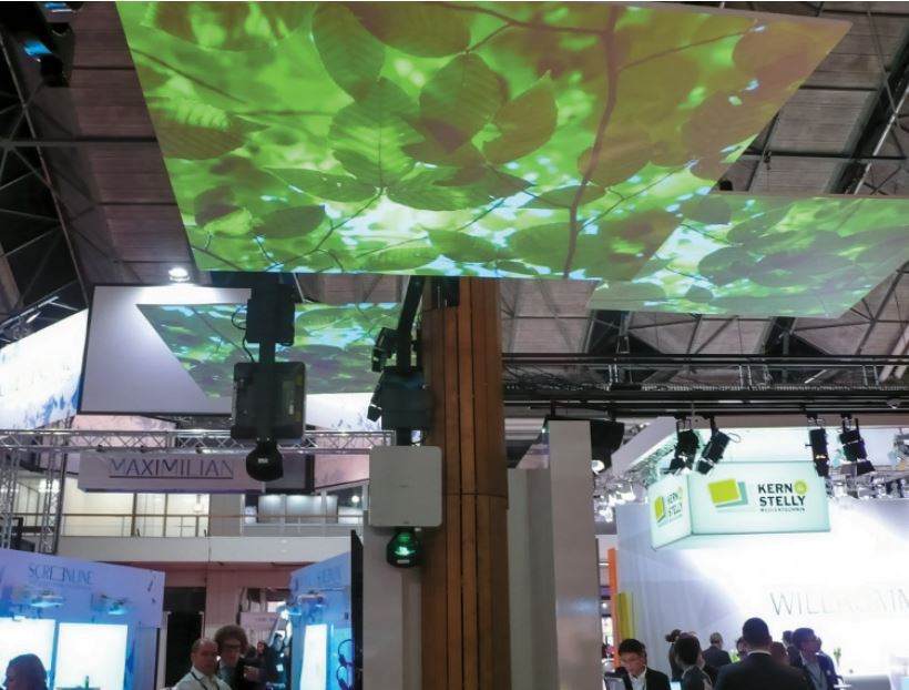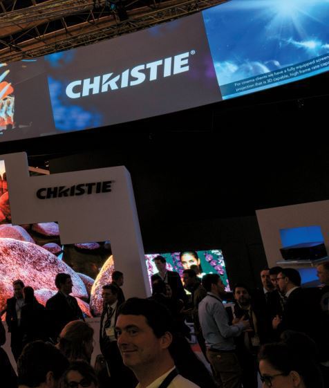 Extrem weitwinklig ist die „Captiva“ Projektor-Serie mit 1:0,25 Abbildungsverhältnis. Sony hat seine breite Palette an 3LCDLaser-Licht-Projektoren in Helligkeiten von 2.000 Lumen bis 7.000 Lumen nun um den den 3LCD-Laser Projektor VPL-FHZ57 mit 4.100 Lumen ergänzt. Die heimlichen Stars auf dem Stand waren jedoch die beeindruckenden 4K SXRD Laser Z-Phosphor Projektoren VPLGTZ270, mit denen eine 8K × 2K Edgeblending-Projektion sowie eine Dome-Projektion realisiert wurde. Direkt an der Wand, beziehungsweise unter der Leinwand, war der 4KLaser-Ultraweitwinkelprojektor VPLGTZ1 positioniert und projizierte mit 2.000 Lumen ein 3,7 m großes Bild. Digital Projektion inszenierte seine Projektoren in jeder Position – ob inside 4KQuad mit 4k-Auflösung und 25.000 Lumen mit 4 × 465 W-Lampen oder die Laserlampen-Version inside Laser 4K mit 12.000 ANSI-Lumen.