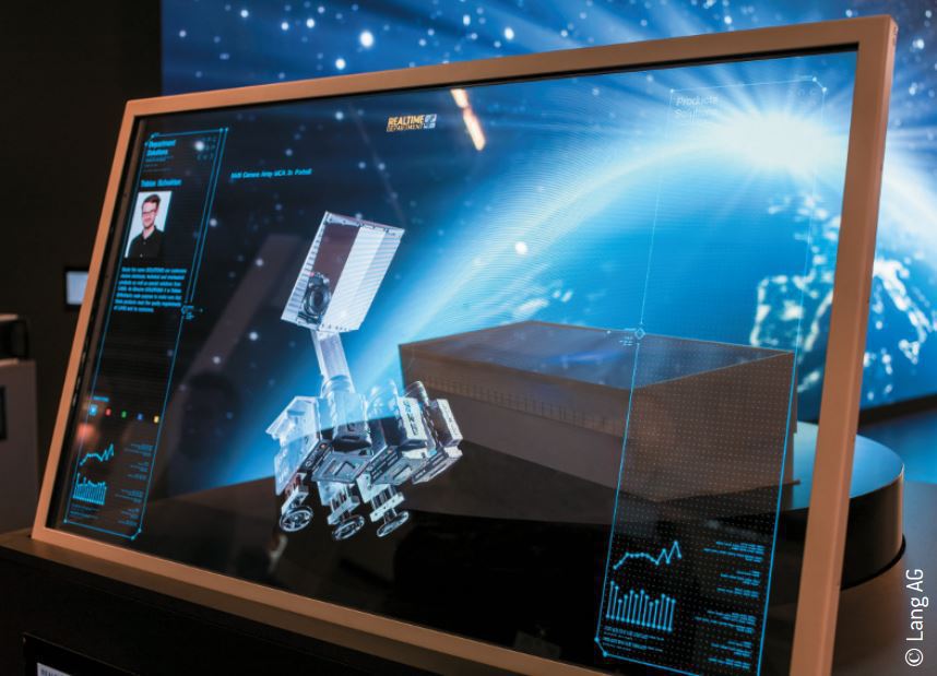 Planar wurde vor kurzem von dem LED Produzent Leyard übernommen. Dementsprechend konnte man unterschiedlich auflösende LED-Module auf dem Stand in direktem Vergleich beurteilen. Neu auch die Komplettierung der UltraRes Serie mit 4K-Displays von 75″, 84″ und 98″ Größen. Natürlich durfte auch hier transparente LCD- und OLED- Technik nicht fehlen. Den Trend zu transparenten OLED-Displays konnte man auch bei der Lang AG verifizieren: Die präsentierte GhosT-OLED-Installation zeigte das Abbild eines realen 3D-Modells, wobei die kontrastreiche und hoch aufgelöste Bild- und Grafikinformation freigestellt vor dem Exponat „schwebte“. Durch das Display hindurch lässt sich das Objekt betrachten; das transparente OLED benötigt keine Hintergrundbeleuchtung, da die Bildpunkte selbstleuchtend sind. Transparente OLED-Displays werden in Kürze bei der Lang AG AG für Verkauf und Vermietung verfügbar sein; optional können die Displays mit interaktiver Touch-Funktion ausgestattet werden.