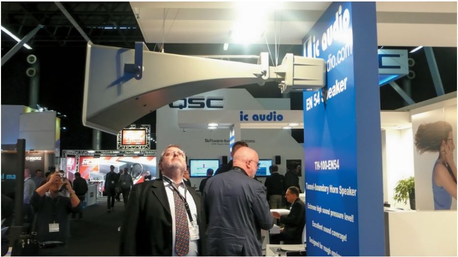 Eyecatcher am Stand von ic audio: der Tunnel-Lautsprecher TH-100-EN54 (Bild: Helga Rouyer-Lüdecke)