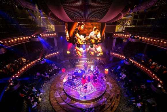 Zu den technischen Highlights zählt auch die durch Amptown System Company installierte LED-Anwendung im Theatrium der neuen AIDAnova, das mit seiner 360-Grad-Bühne zentrales Entertainment-Highlight des Kreuzfahrtschiffes ist.