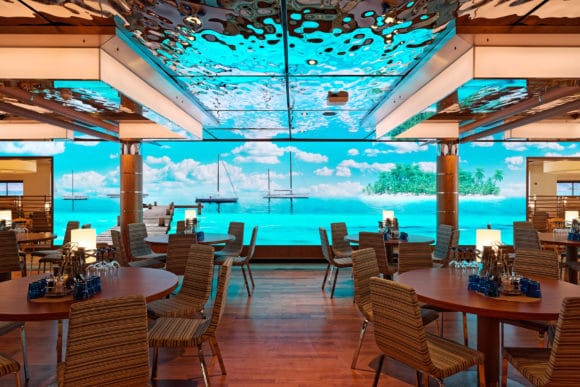 31 m² große LED-Screen von Absen im Yachtclub-Restaurant auf AIDAnova (Bild: ASC)