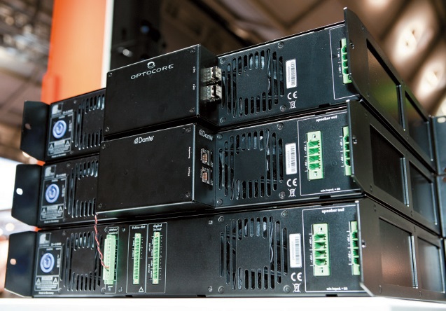 Optocore-Aufsteckmodule für die DSP-Verstärker DI- 2.2000 (2 × 2000 W) und DI-4.1000 (4 × 1000 W) von Fohhn (Bild: Christiane Bangert)