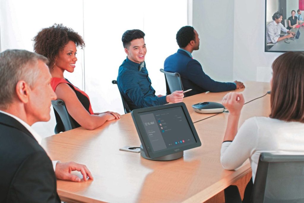 Entsprechend steht die intuitive Bedienung bei den Meeting-Lösungen von Logitech, bekannt durch seine Computer-„Mäuse“ und Webcams, im Vordergrund. Dabei bietet man je nach Meeting-Anforderung und Raum – Huddle Space, Meetingraum oder Konferenzraum – unterschiedliche (Kamera-)Sets an, auch mit Anschlussboxen und Bedienkonsolen. Interessant für Collaboration ist hier die Meetingraum-Konsole „SmartDock“ für Skype- Raumsysteme, die das Starten eines digitalen Meetings per Tastendruck ermöglicht und die vertraute Skype for Business-Benutzeroberfläche bietet. Hier arbeitet man in Sachen AV-Steuerung innerhalb des Logitech Collaboration Program (LCP) mit namhaften Herstellern für AV-Signalmanagement wie Extron zusammen.