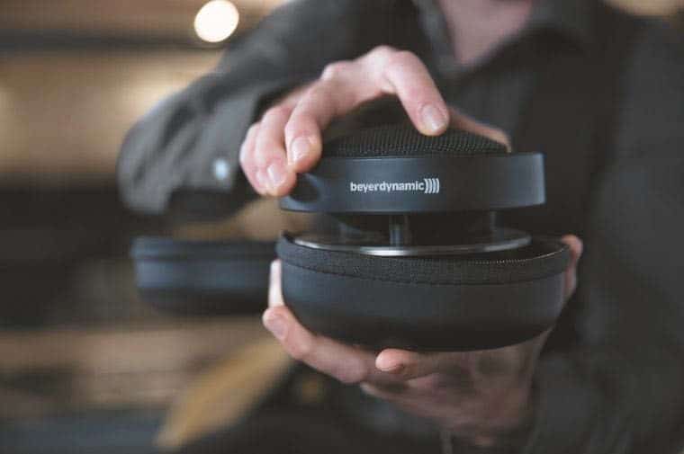 Auch beyerdynamic schließt sich dem Collaboration- Trend an: Phonum nennt sich ein neues kompaktes, akkubetriebenes und kabelloses Speakerphone mit drei Mikrofonkapseln. Es verspricht laut Hersteller ein schnelles und unkompliziertes Aufbauen in jedem Raum und kann über Bluetooth oder USB mit einem Smartphone oder einem Computer verbunden werden. Ein Lautsprecher strahlt den Schall nach unten auf die Tischoberfläche ab und verspricht damit dessen optimale Verteilung im Raum. Mit der „Voice Compass“-Technologie kann Phonum selbstständig die Position eines Sprechers im Raum identifizieren und die Aufnahme auf diese Person fokussieren.