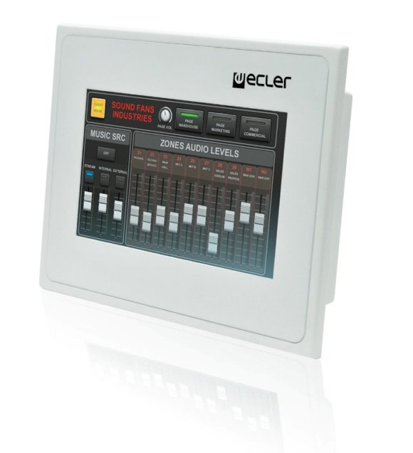 Darüber hinaus hat Ecler eine eigene Touchscreen-Steuerung entwickelt, die primär zur Bedienung der Audio-Komponenten wie den Matrix-Systemen und vernetzten Verstärkern dient. Über diesen Touchscreen sollen auch andere Gewerke steuern lassen. In der frei konfigurierbaren Oberfläche können UDPBefehle hinter Buttons, Icons und anderen Elementen hinterlegt werden. Sobald die IP der nötige Port und der Befehlssatz der Funktion des anderen Gewerks bekannt ist, lassen sich diese Steuerbefehle hinterlegen und abrufen.