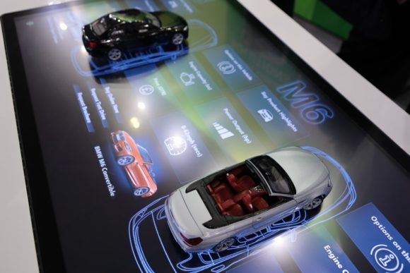 Bei hochwertigen Verkaufsgütern wie Autos können zeitgemäße mediale Erlebnisinstallationen – durchaus kaufentscheidend – Einfluss nehmen. Personalentlastung mittels interaktiver Anwendung bei einer Apotheken-Lösung demonstrierte eine weitere Eyefactive-Installation. Der Kunde sucht sich sein Präparat ohne personelle Unterstützung am Bildschirm aus. Eine Schnittstelle zur Kommissioniertechnik löst die Warenausgabe aus und der Kunde muss an der Kasse nur noch bezahlen.