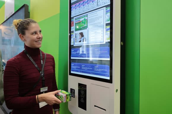 Das virtuelle Regal – eine interaktive Touch-Lösung für Apotheken von Eyefactive inkl. Barcode-Produkterkennung (Bild: Dominik Roenneke)