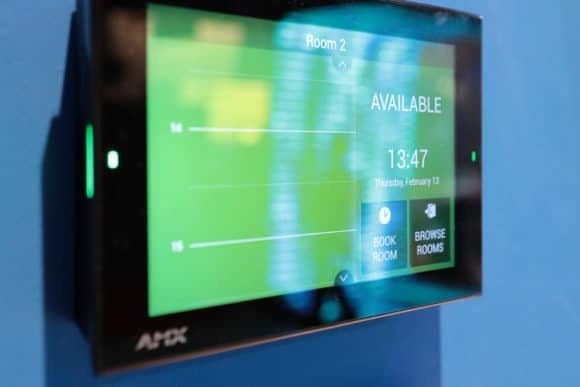 AMX demonstrierte seine Hard- und Software-Lösung mit AMX Acendo. Dabei werden mit Acendo Core, basierend auf Windows 10 IoT Enterprise, über eine „intuitive Benutzeroberfläche“ alle gewünschten Funktionen verknüpft: von Besprechungsplanung, Medienwiedergabe, Dokumentenverwaltung und -zugriff, Unterstützung von Anwendungsprogrammen, Touchdisplay-Integration sowie Einbindung von Endgeräten und Videokonferenzfunktionen. Neben der Möglichkeit, zwei Touchscreens einzubinden, bietet AMX die Hardware für passende Kamera- und Tonsysteme sowie Raumbuchungs-Touchscreens für Besprechungsräume an.