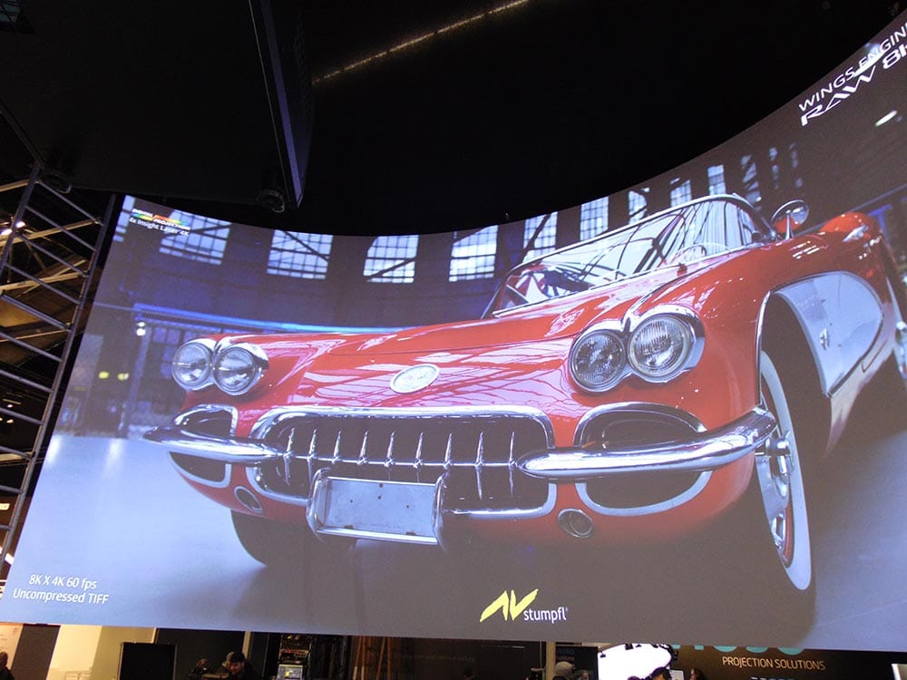 Natürlich auf der ISE 2018 dabei ist das Flagschiff der AV Stumpfl Serverfamilie, der Wings Engine RAW 8K, der seine Signale auf 4 x 4K-Digital Projection Projektoren übertragt und somit ein Gesamtbild von 8192 × 4320 Pixel in 12 Bit Farbtiefe, unkomprimiert, auf die Curved Leinwand bringt. Die grandiosen Filme wurden teilweise sogar in Deutschland in Köln produziert (atmosphere media GmbH ).