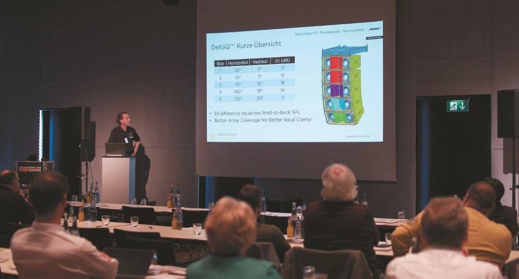 Über Nutzungsprofil, Raumakustik und das passende Soundsystem referierte Thomas Steinbrecher, Audioexperte von Bose Professional. Er skizzierte eindrucksvoll die planerische Herangehensweise zur Analyse der jeweiligen Raumakustik und das Finden der dazu passenden elektroakustischen Lösung.