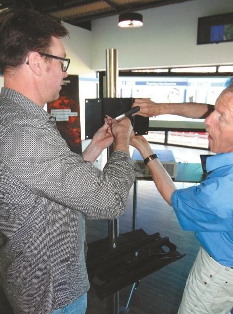 Die Teilnehmer stellten sich bei Schnepel/Vogel’s der Aufbau-Challenge und bauten in wenigen Minuten jeweils ein Display-Ständersystem selber zusammen. (Bild: Achim Hannemann)
